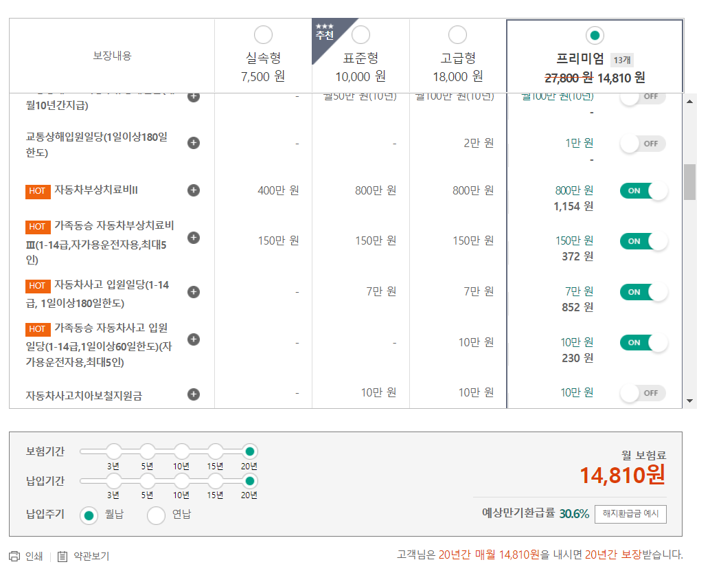 2. 나머지 담보 결정에 대해서는 본인이 현재 가지고 있는 기존 보험과 비교