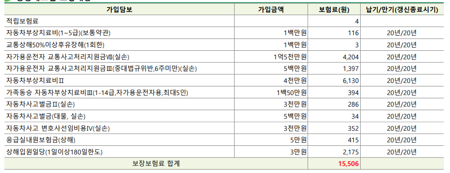 가입한 나의 보장 내역..